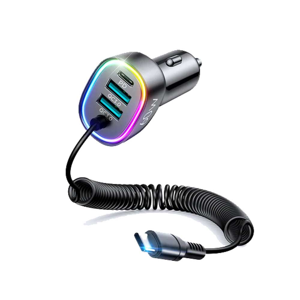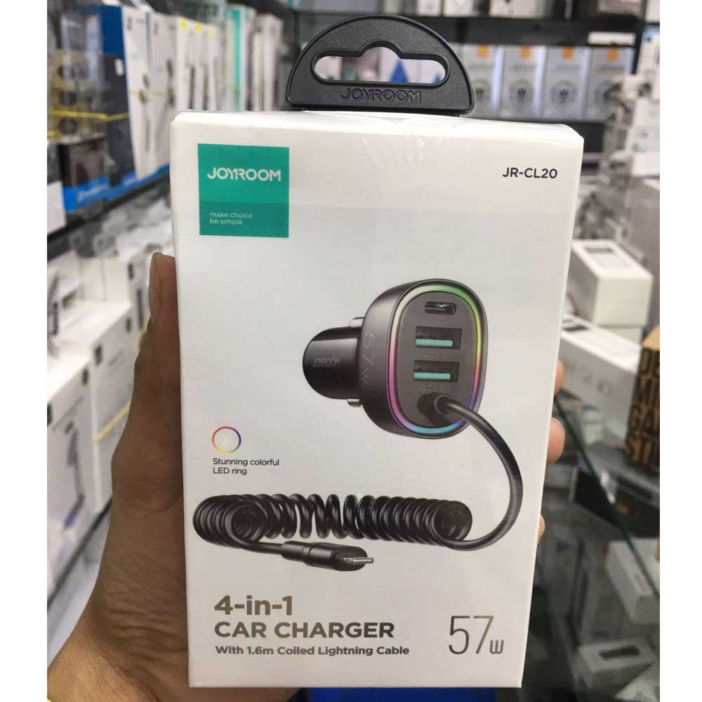 Buy Joyroom JR-CL20 4 in 1 Car Charger with Coiled Data Cable 57W online from Cellsii.com. Joyroom JR-CL20 have 57W high-power output, charge 4 devices simultaneously. It is stunning colorful LED ring lets you find the charging ports easily at night. Also intelligent recognition chip, proper current distribution, harmless to your phones and cars. That is fireproof PC material for safer charging with less heat.