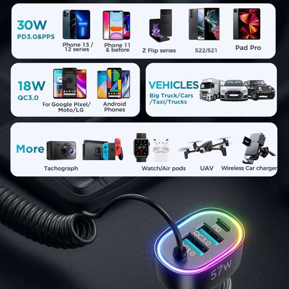 - Stunning colorful LED ring lets you find the charging ports easily at night.