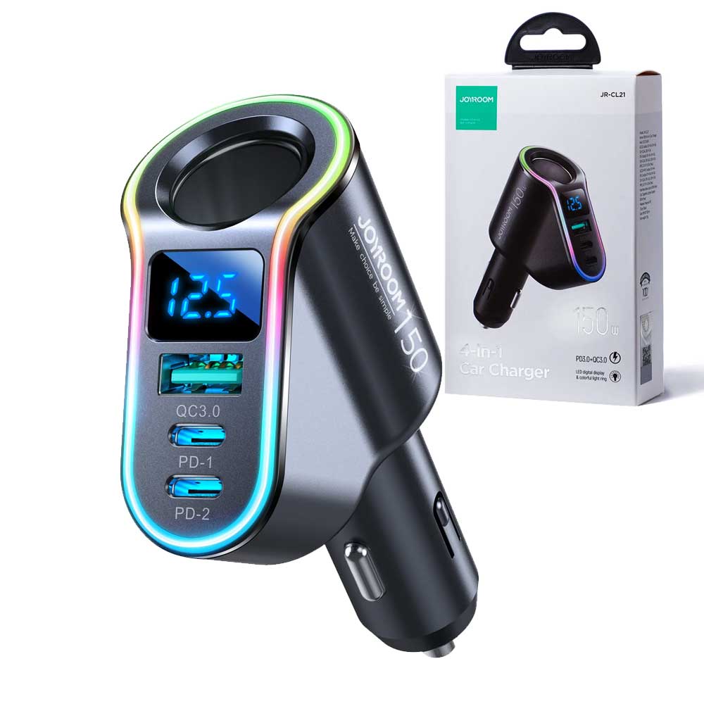 Joyroom JR-CL21 150W 4-in-1 Car Charger with LED Digital Display