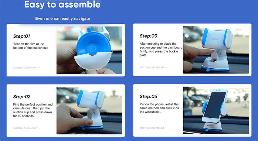 - Press suction cup to lock, Firm and stable by pressing suction cup, The pressure lock drains the air out of suction cup, The suction cup is sucked tighter and firmer