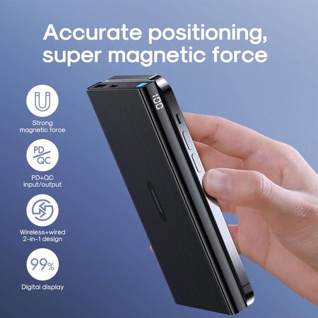 - Compact Power Bank Joyroom JR-W010 with a power of 10000mAh, compatible with Magsafe technology.