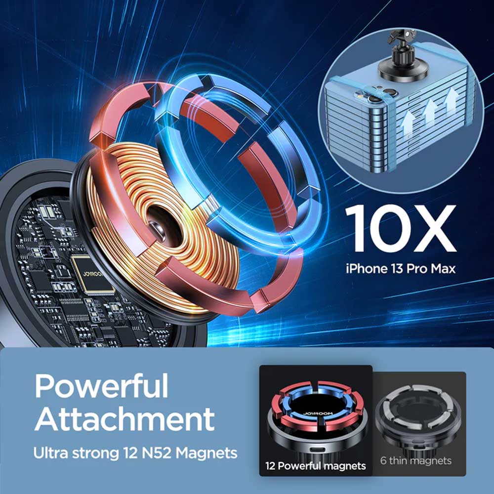 - Joyroom magnetic phone holder mount for car has 12 wider built-in Rb magnets, providing super strong attachment power. This magnetic phone car mount can even hold 10 iPhone 13 smartphones steadily.