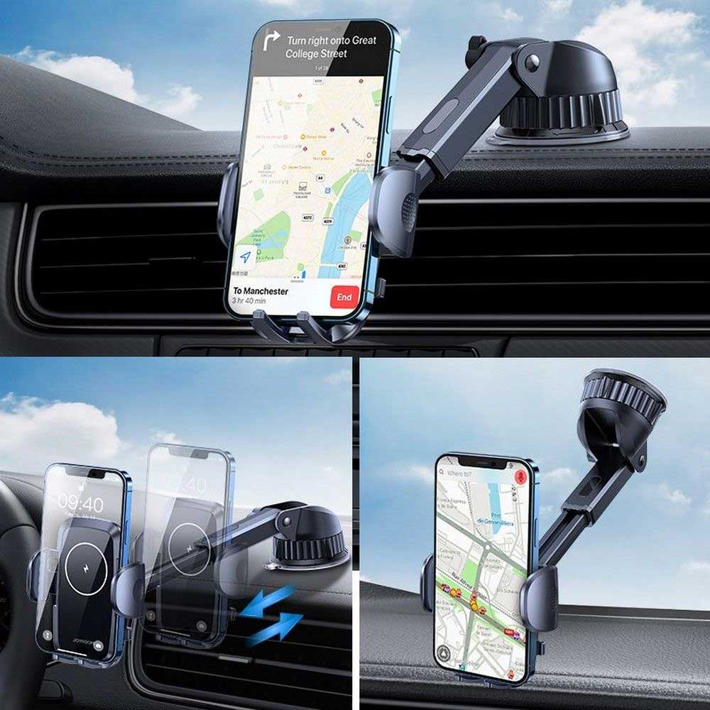 - 2-in-1 design: wireless charger + car dashboard mount phone holder.