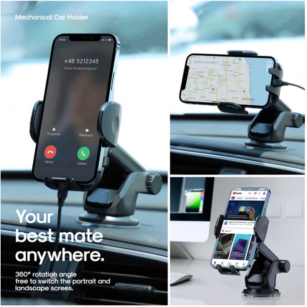 Buy Joyroom JR-ZS259 Mechanical Car Phone Holder online from Cellsii.com. It has been made of best materials for high durability and stable phone grip. Additionally it can be rotated in the range of 360° - thus you can set a perfect inclination angle for good visibility. The holder itself looks very simple and classic, and in effect matches most car interiors.
