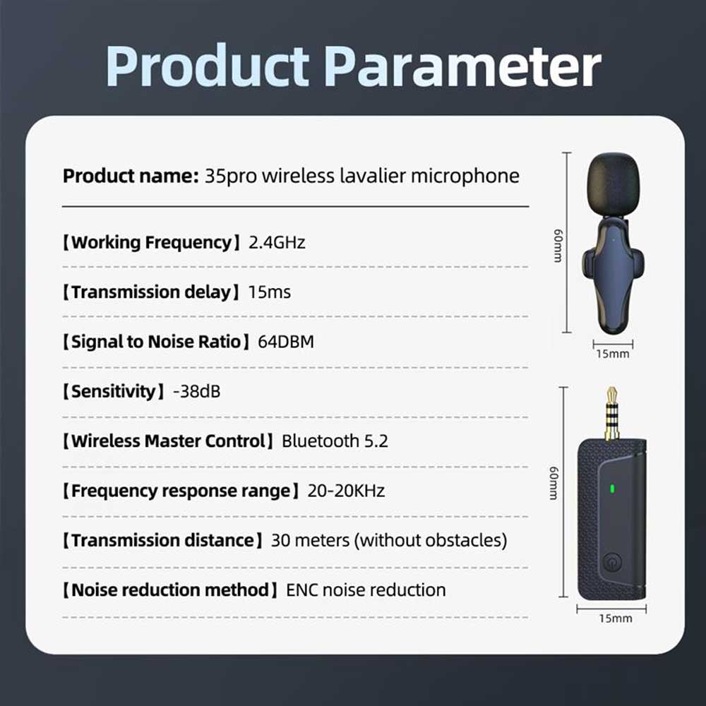 K35 Pro Wireless Noise Reduction Lavalier Microphone