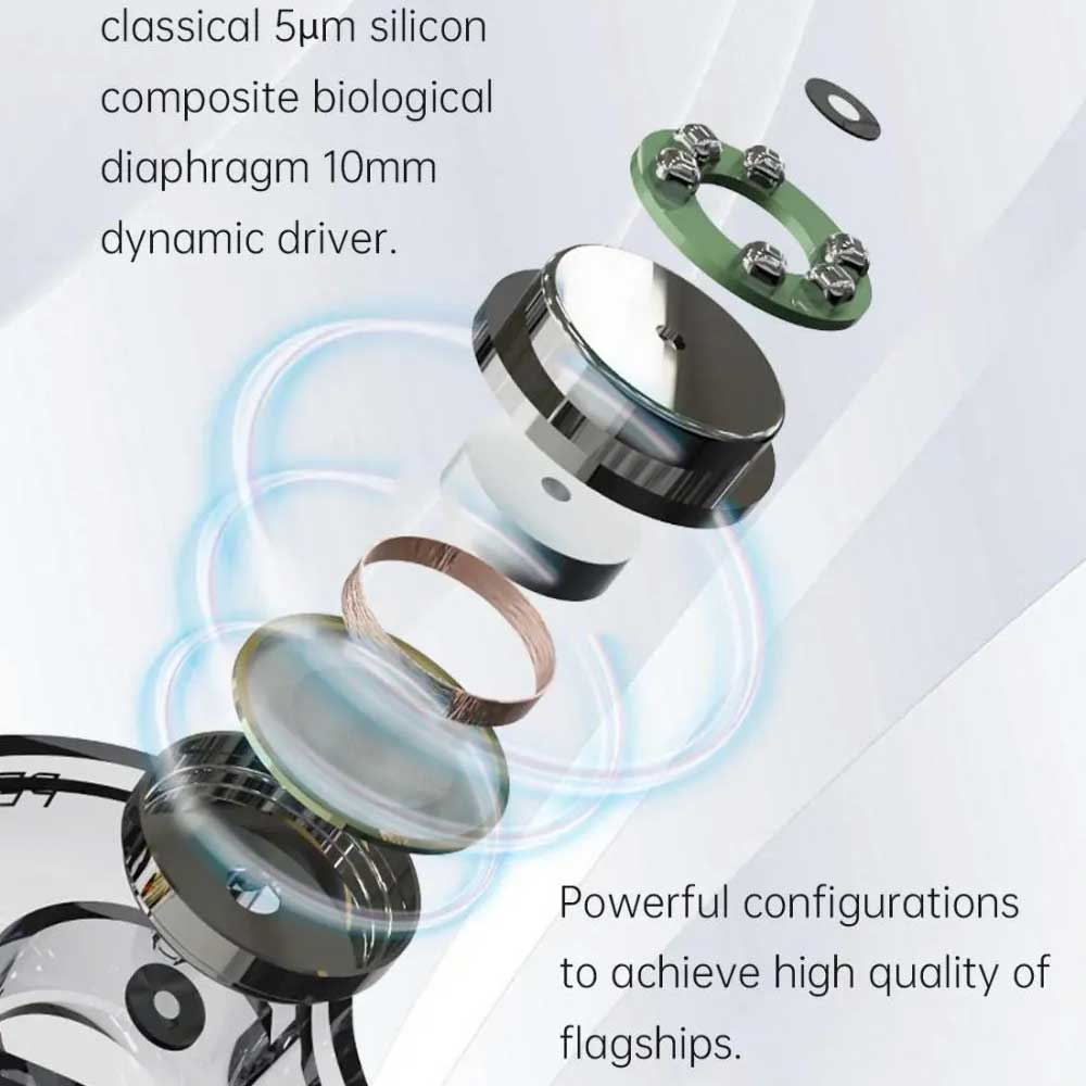 - 10mm silicon composite biological diaphragm DD, Rosefinch adopts the classical 5m silicon composite biological diaphragm 10mm dynamic driver.