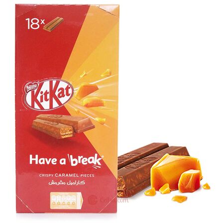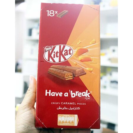 Buy KitKat Have a break crispy caramel pieces 18pcs online from Cellsii.com. Break off a piece of the indulgent KitKat Caramel Crispy Wafer Fingers topped with a layer of crispy caramel pieces covered in milk chocolate. A chocolate lover’s delight, this decadent combination is the perfect, special addition to your well-deserved break. Have a break, have a KitKat.