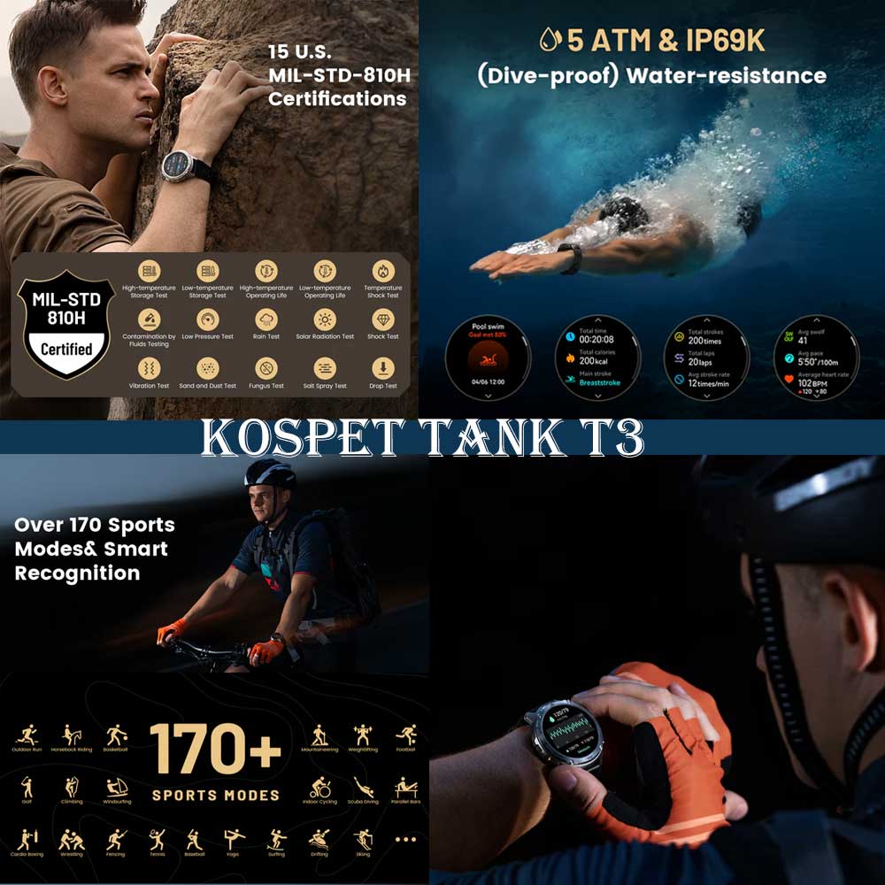 - Customizable Watch Faces: Personalize your smartwatch with a variety of watch faces to match your style or mood. The Kospet Tank T3 offers numerous customizable options, allowing you to create a look that suits your preferences.