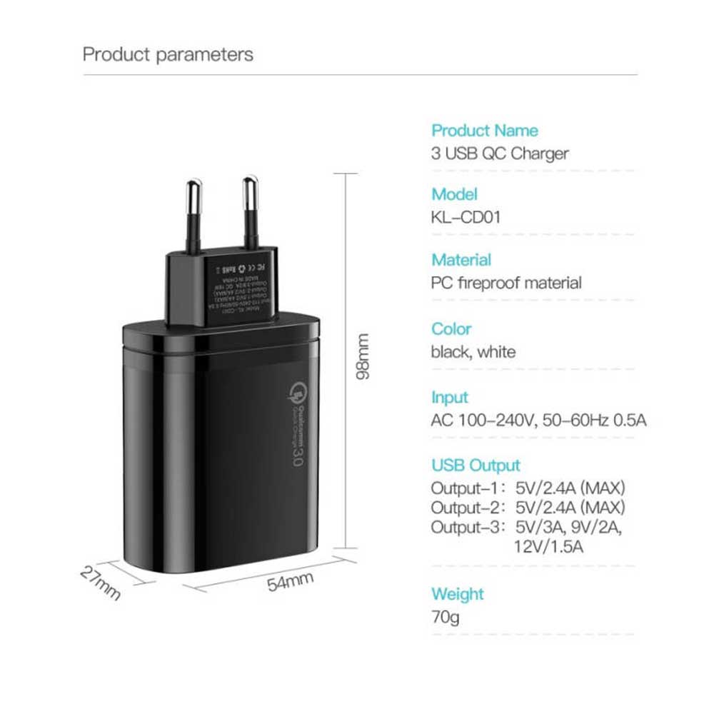 - Output1: QC 3.0 "5V/3A","9V/2A","12V/1.5A"
