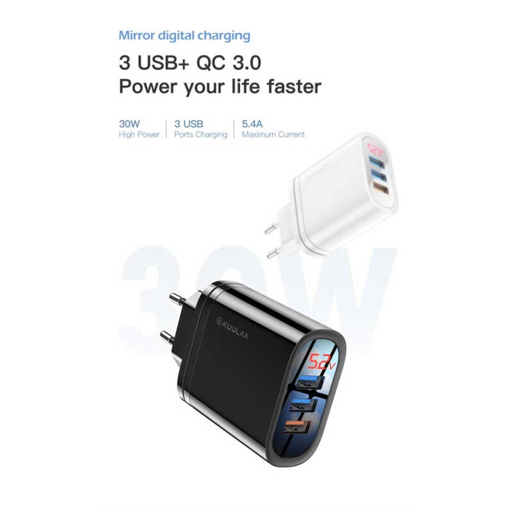 Buy Kuulaa Quick 3.0 USB Charger 30W online from Cellsii.com. High quality chip, the shell is made of flame retardant material, it will not get hot when charging. Voltage standard is 110~240V, frequency range is 50~60Hz meet the power supply needs of different countries. Intelligent charging solution, self-adapting, Equipment required, charging fast and stable.