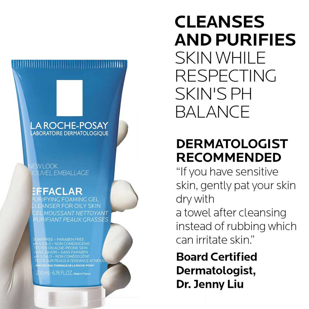 - The Effaclar Foaming Gel Cleanser cleanser respects the skin’s PH balance. The gentle formula has a pH 5.5 the average PH value of the skin’s surface, so there is no disruption to the skin’s natural balance.