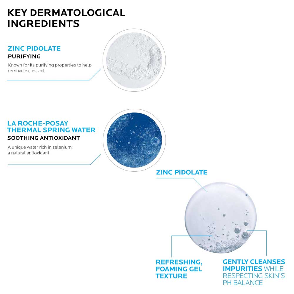 - The two active ingredients in Effaclar Foaming Gel Cleanser cleanser are ideal for oily, acne-prone skin and work together to reduce sebum, oil, visible redness, and irritation.