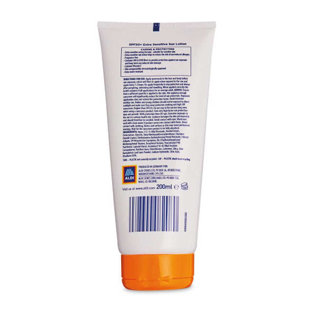 - Lacura extra sensitive sun lotion, SPF 50+, found it to be hypoallergenic and free of Fragrance, Gluten.