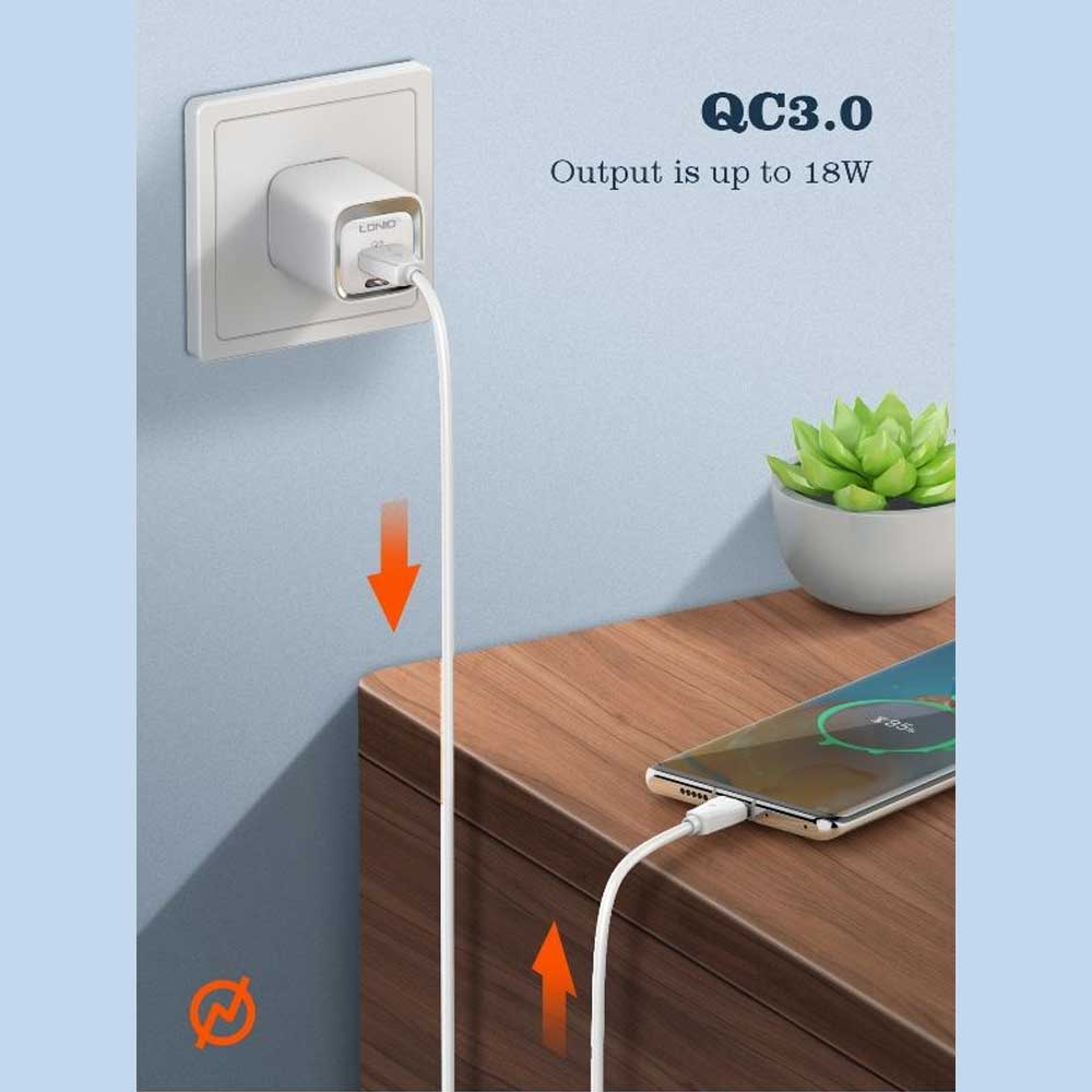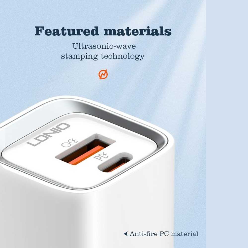 Buy LDNIO A2318C USB-C Fast Charging Adapter 20W in Bangladesh from Cellsii.com. Support fast charging of two device at the same time. Featured material ultrasonic wave stamping technology. Raise it up a notch CNC high gloss chamfored metal ring. QC3.0 output is up to 18W.