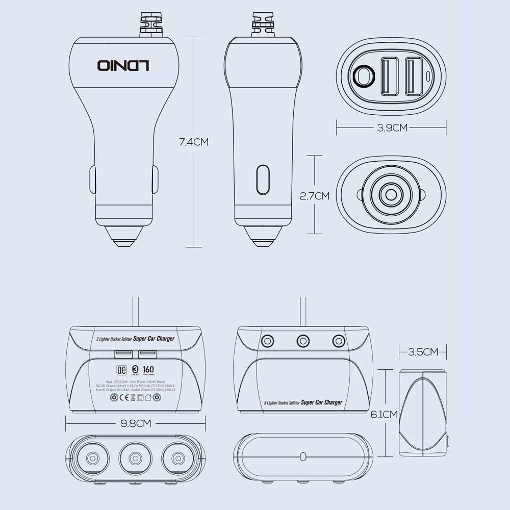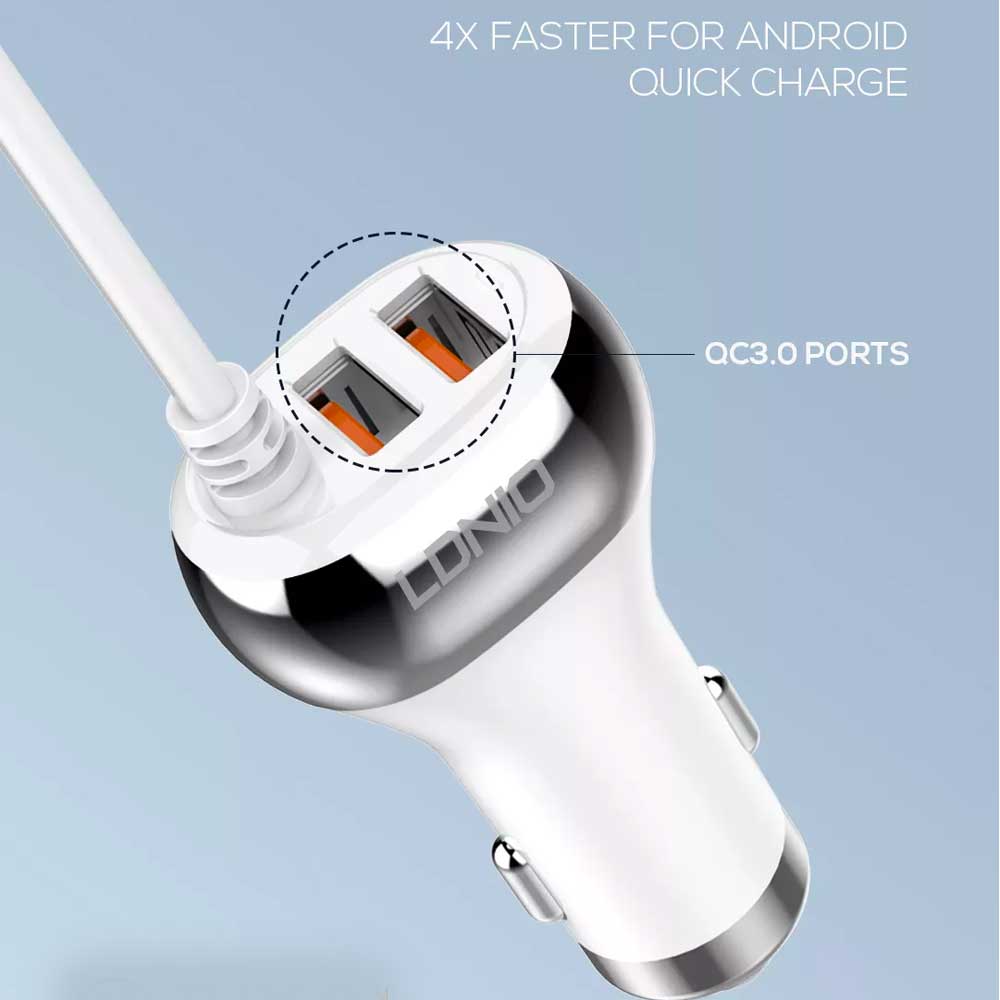 Buy LDNIO C504 Dual QC3.0 USB Port With 3 Slot Socket Adapter Plug online from Cellsii.com. Super car charger with 4 usb port QC3.0 with 3 extension socket splitter 1. USB port 4 usb port 2 USB ports with QC3.0. 160W high output able to support car fridge, car cleaner, navigation and other electrical appliances below 40W. Four USB ports with dual USB ports support QC 3.0 36W fast charging.