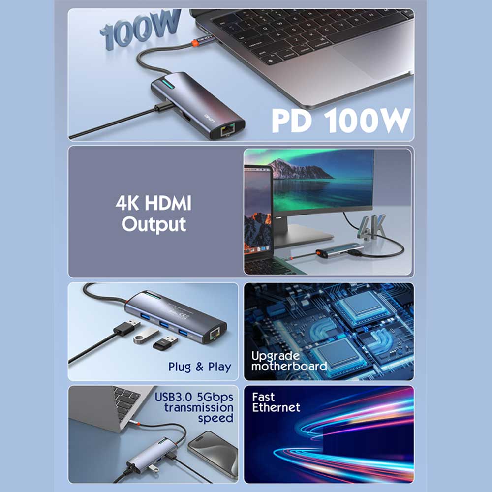 - USB-C*1+HDMI*1+USB3.0*3+RJ45*1 for all your data conversion needs.