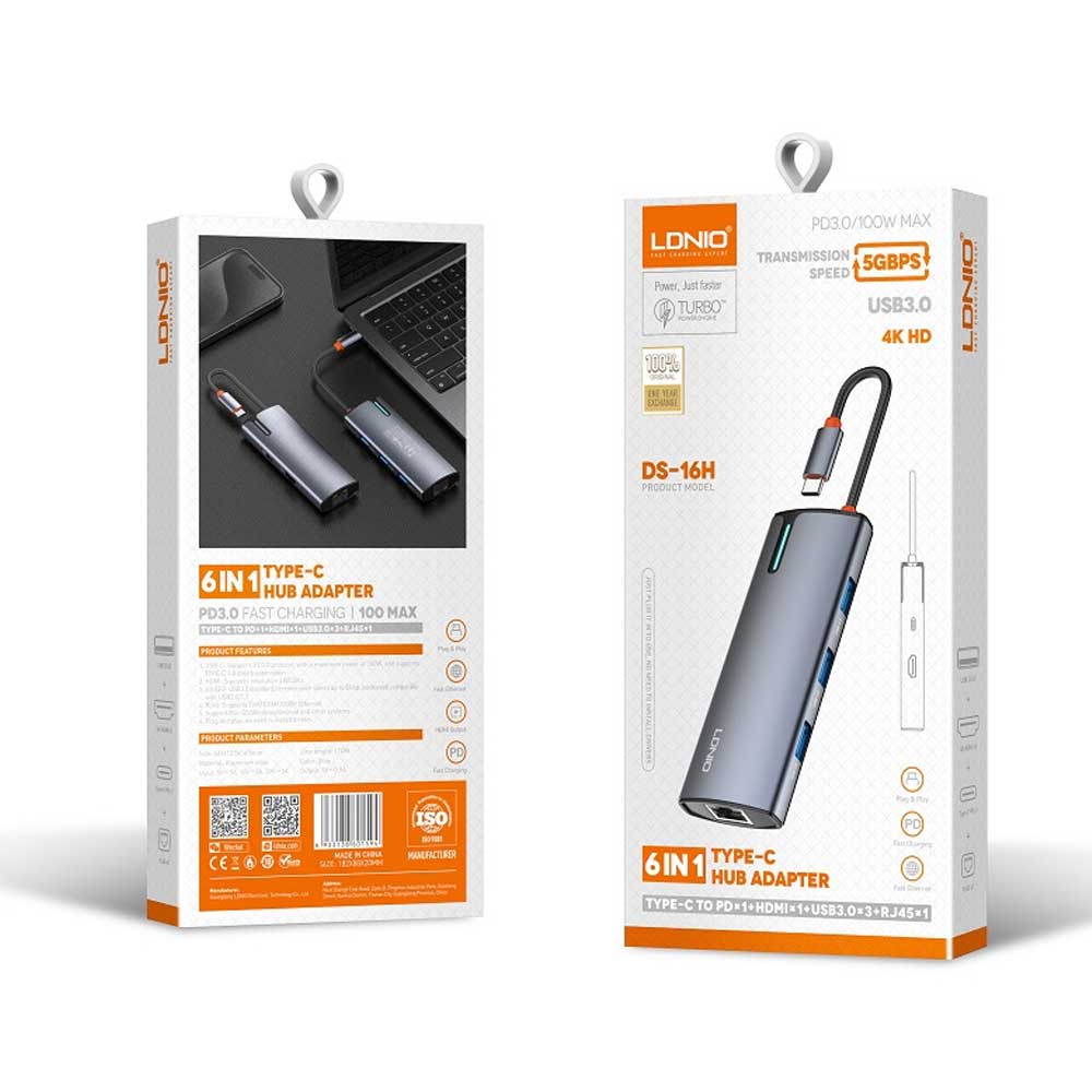 LDNIO DS-16H 6 in 1 4K HD Type-C Hub Adapter
