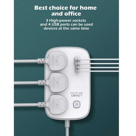 - The LDNIO SC3416 comes equipped with a robust 2-meter heavy-duty power cord that ensures an optimal flow of power to all your connected devices. No more hassles with short cords or limited reach! Additionally, the power strip is intelligently designed to accommodate multiple electronic devices simultaneously, even accommodating those bulky adapters without sacrificing other outlets.