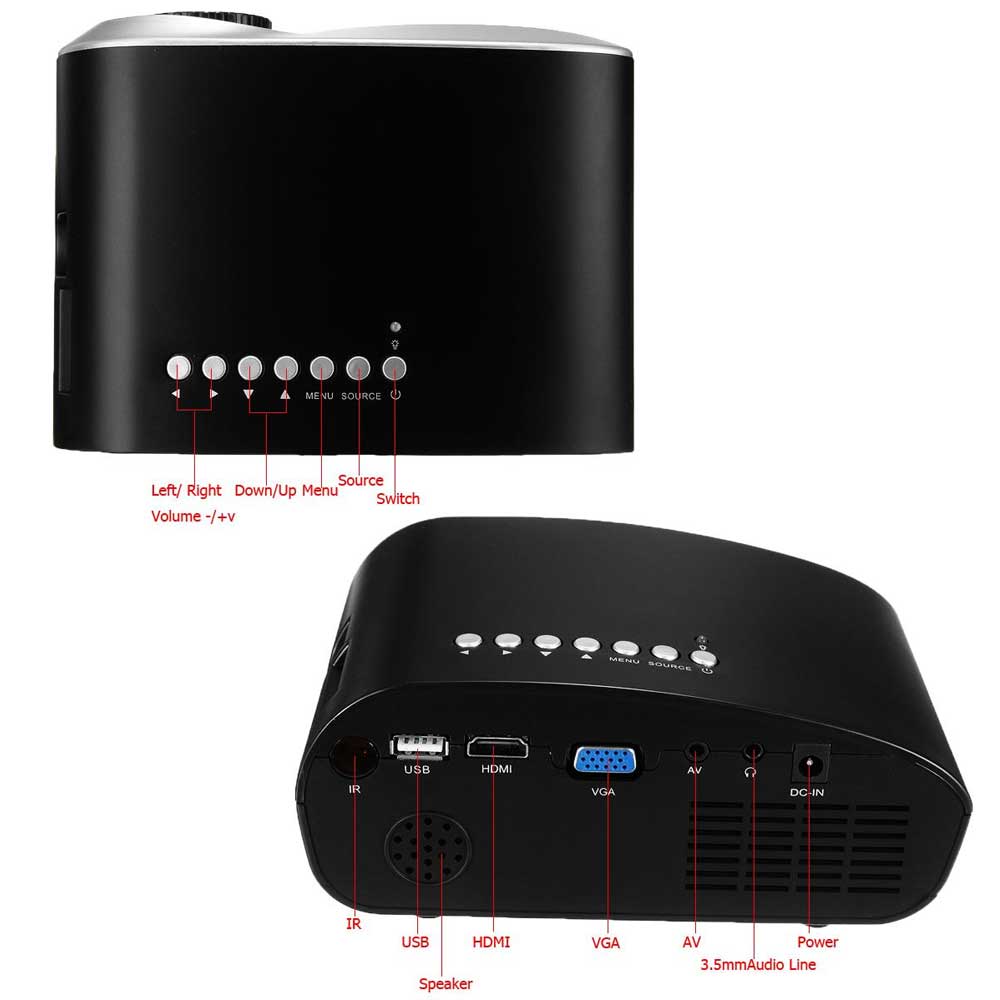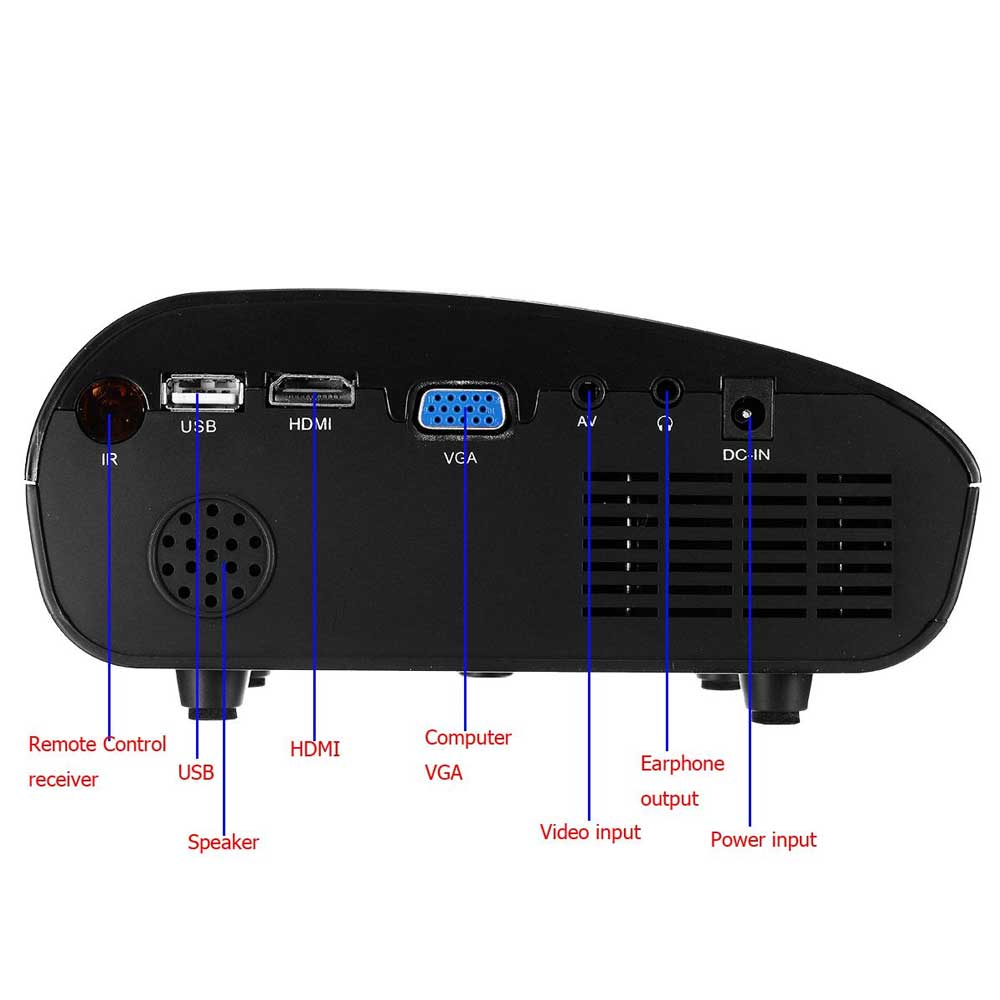 - Input: VGA/AV/USB/HDMI/SD/TV (Support PC Laptop VGA input)