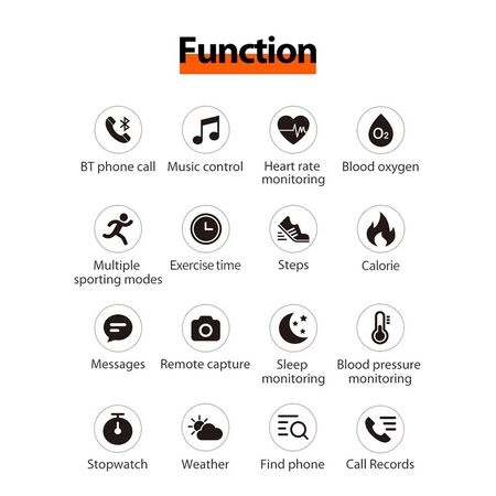 - More Functions: BT Call,,Music Control,Remote Camera,Weather,Find Phone.