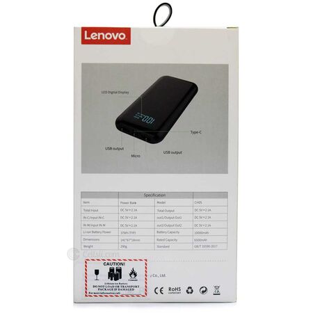 Lenovo 10000mAh Dual Input Output LED Display Power Bank
