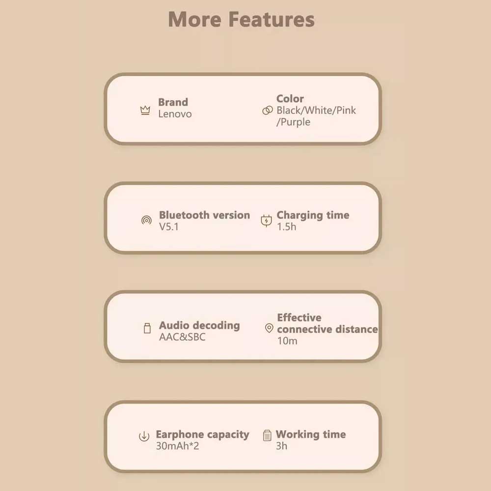 - Lenovo thinkplus X15 Pro Bluetooth 5.1 Wireless Headphones ANC Noise Cancelling AAC SBC Headphones Touch Earbuds with Microphone.