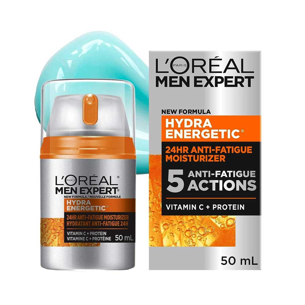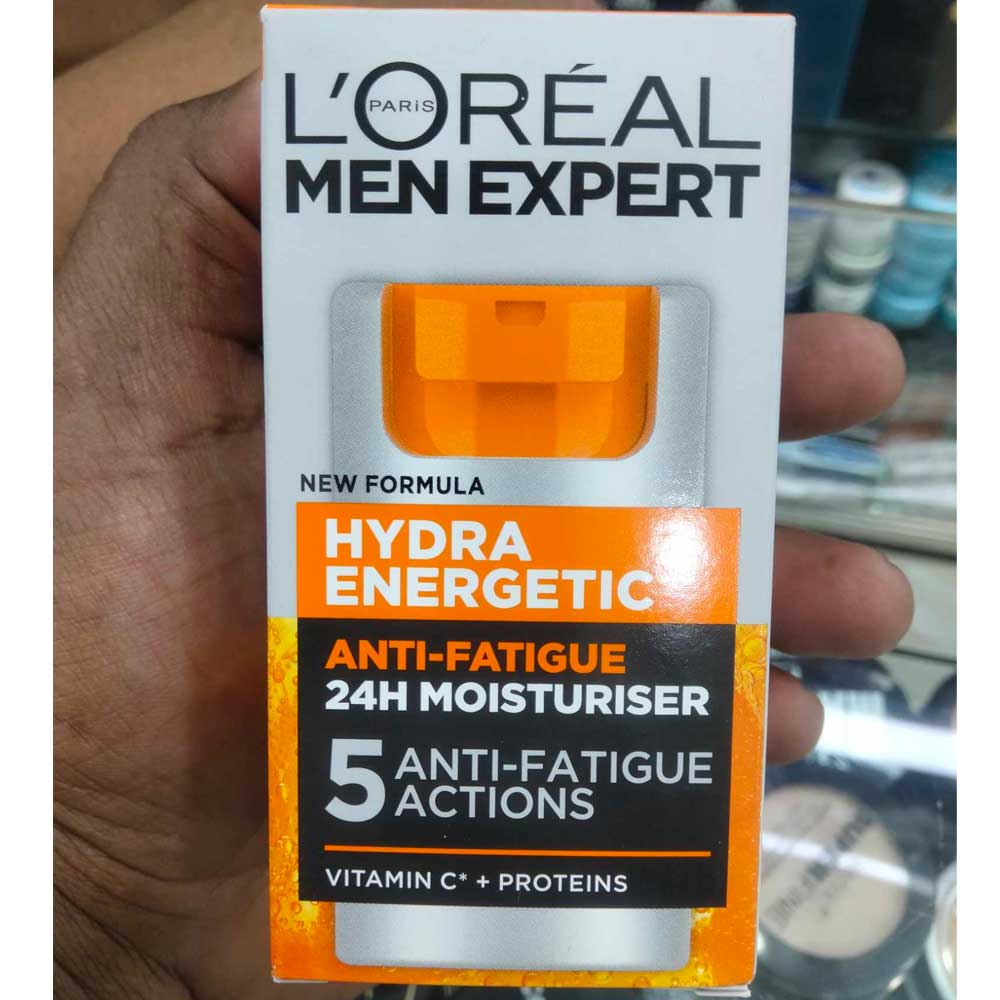 - Take action with L’Oréal Men Expert Hydra Energetic Daily Anti-Fatigue Moisturising Lotion as it helps to reinforce your skin’s natural resistance with a fresh and hydrating formula designed specifically for men’s skin.