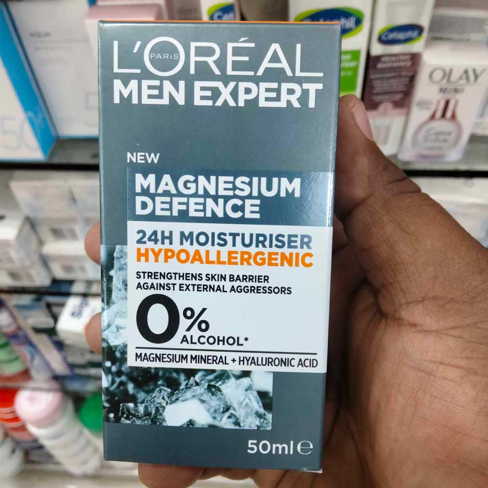 - On the contrary, the L'Oréal Men Expert Magnesium Defense Face Wash actually helps to maintain the functions of the skin's natural barrier, preventing, like so, irritation.
