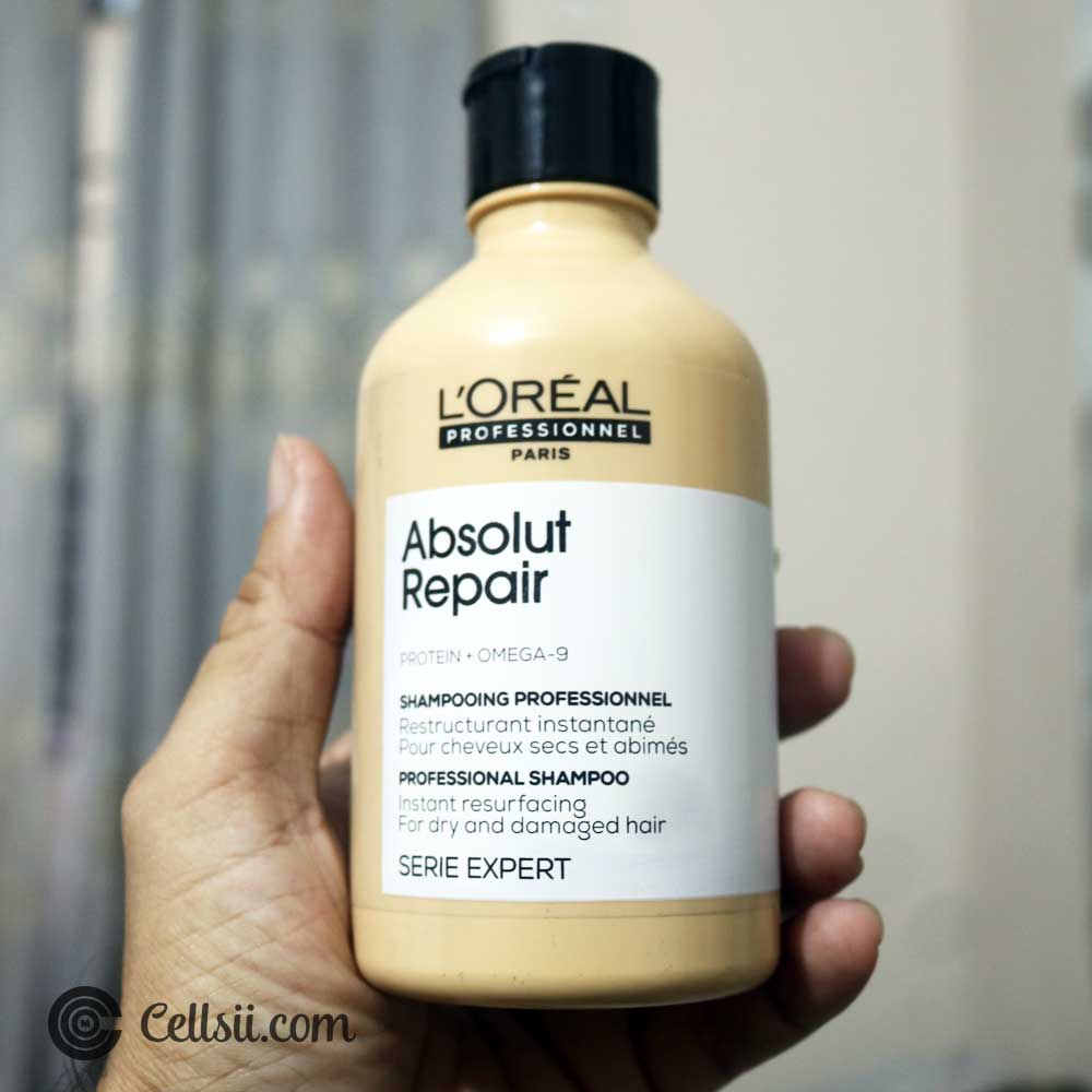 - L’Oréal Professionnel Serie Expert Absolut Repair nourishing hair shampoo helps repair damaged hair.