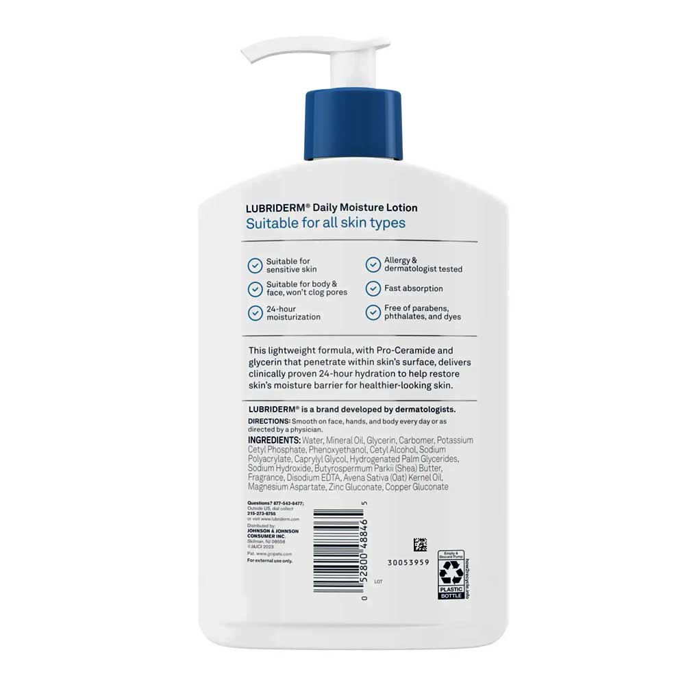 Buy Lubriderm Daily Moisture Body Lotion 177ml online in Bangladesh from Cellsii. Lubriderm Daily Moisture Body Lotion is designed for normal to dry skin and provides essential hydration to keep your skin feeling smooth, soft, and healthy throughout the day. This lotion is formulated with Pro-Vitamin B5 and is clinically shown to moisturize for 24 hours.