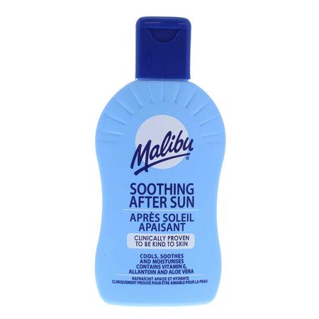 - Malibu after sun lotion cools, soothes and moisture your skin with the effect of Aloe vera