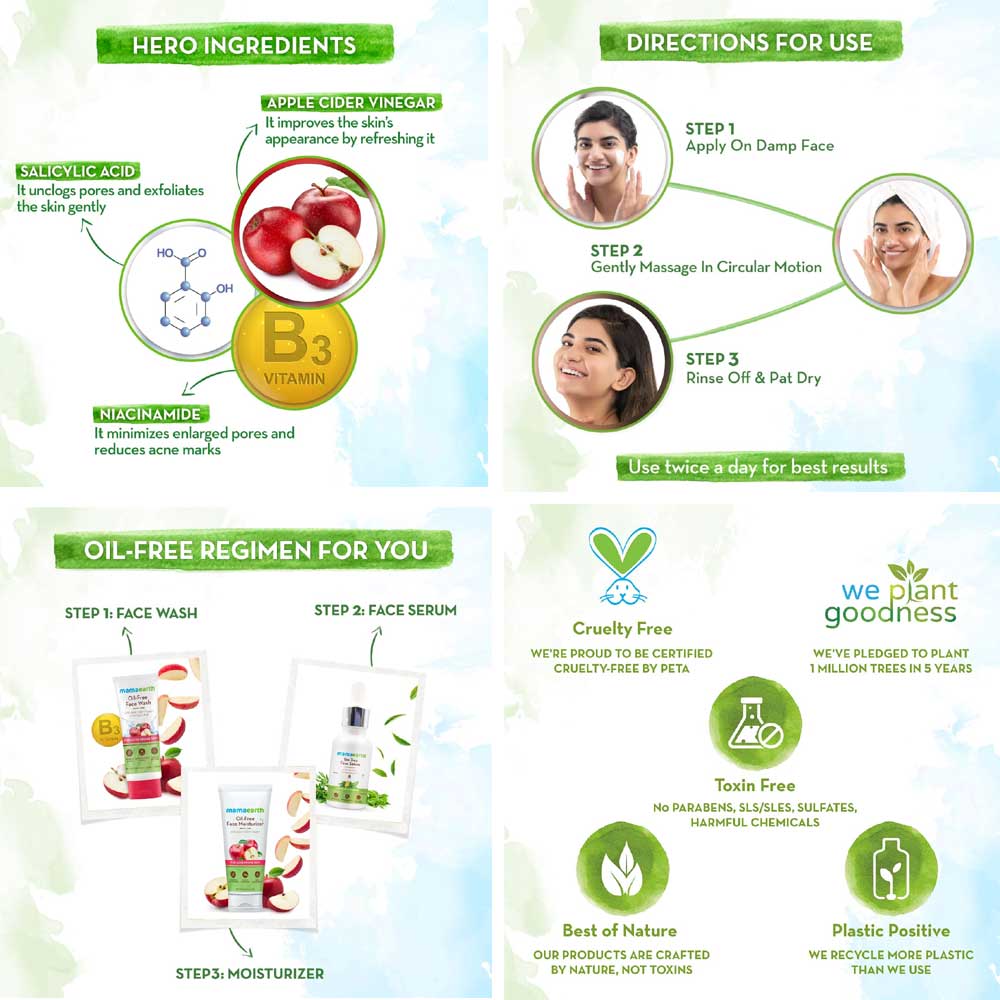 - Grease gone, glow on! Unveil a healthy glow with the goodness of Apple Cider Vinegar & power of Salicylic Acid.