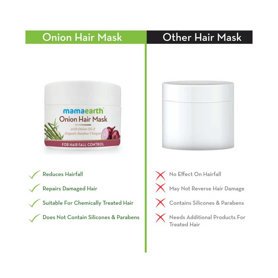Buy Mamaearth Onion Hair Mask for Hair Fall Control with Onion Oil and Organic Bamboo Vinegar 200ml online from Cellsii.com. Mamaearth's Onion Hair Mask works on the roots to strengthen your hair, reduce hair fall, and promote overall hair & scalp health.Onion Oil replenishes the scalp, restoring nutrients lost due to exposure to pollution, harsh weather & harmful chemicals used in hair care products.