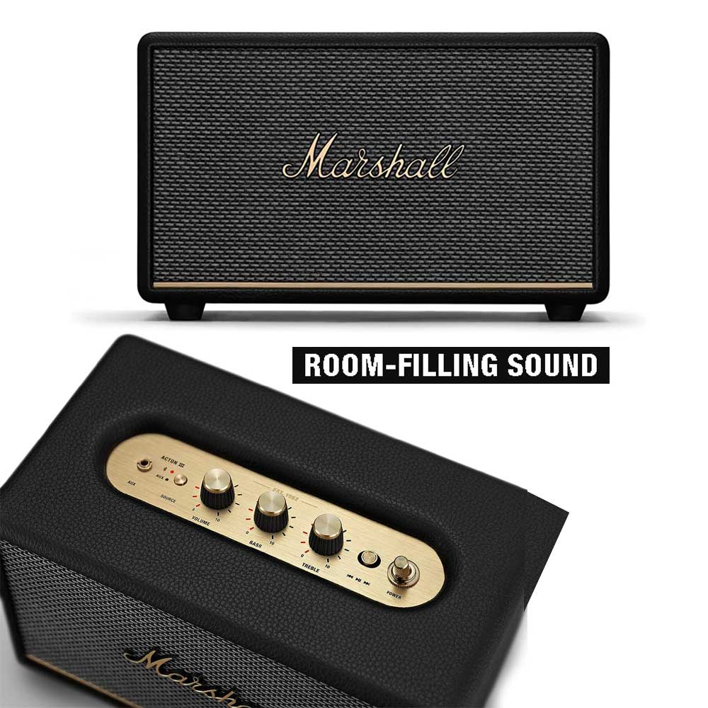 - Room filling sound: Acton III has an even wider soundstage than its predecessor, delivering room-filling Marshall signature sound that has been re-engineered for a more immersive experience. This new generation of Acton has tweeters angled outwards and updated waveguides to deliver a consistently solid sound that is so wide it chases you around the room. Acton III also features Dynamic Loudness, which adjusts the tonal balance of the sound to ensure your music sounds brilliant at every volume.