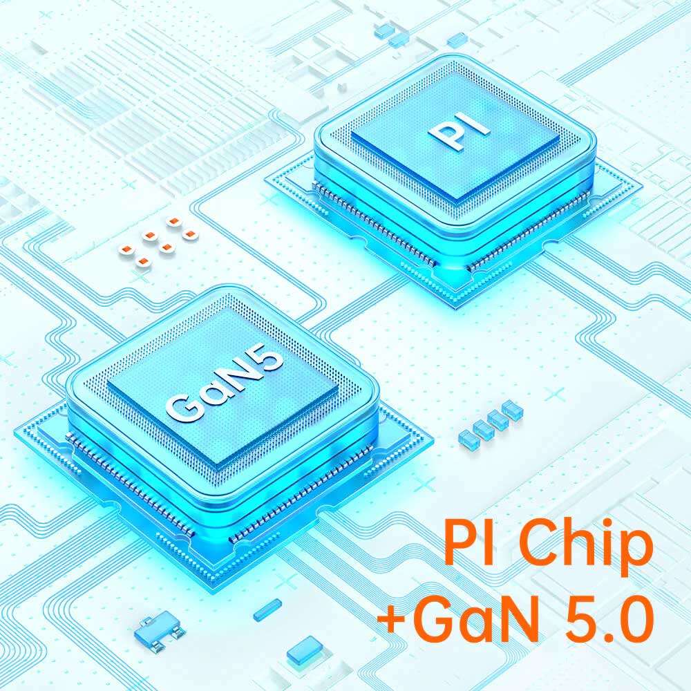- GaN 5 mini 65W three ports quick charger more compact, mini size.