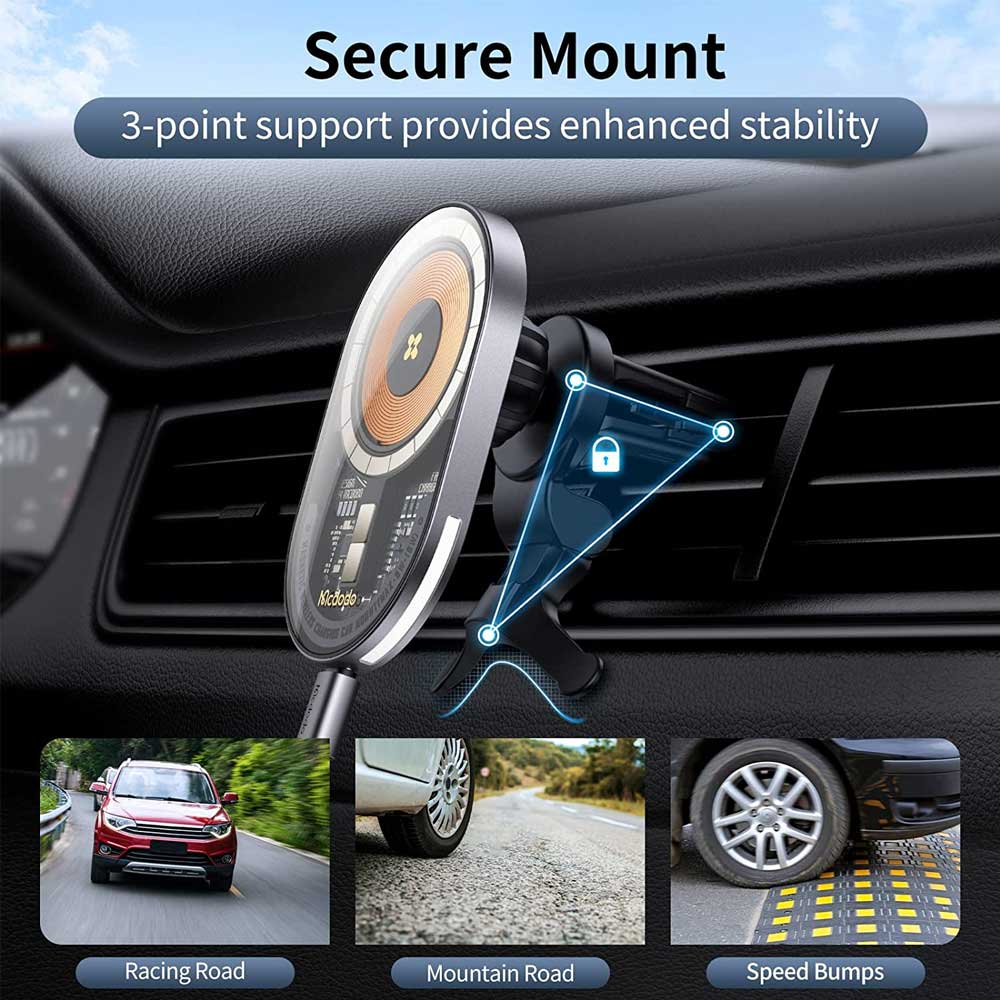 - Magsafe Car Mount can be used as car phone holder mount and wireless charger at the same time.Just put Phone on the car mount magnetic fast charging output up to 15W.