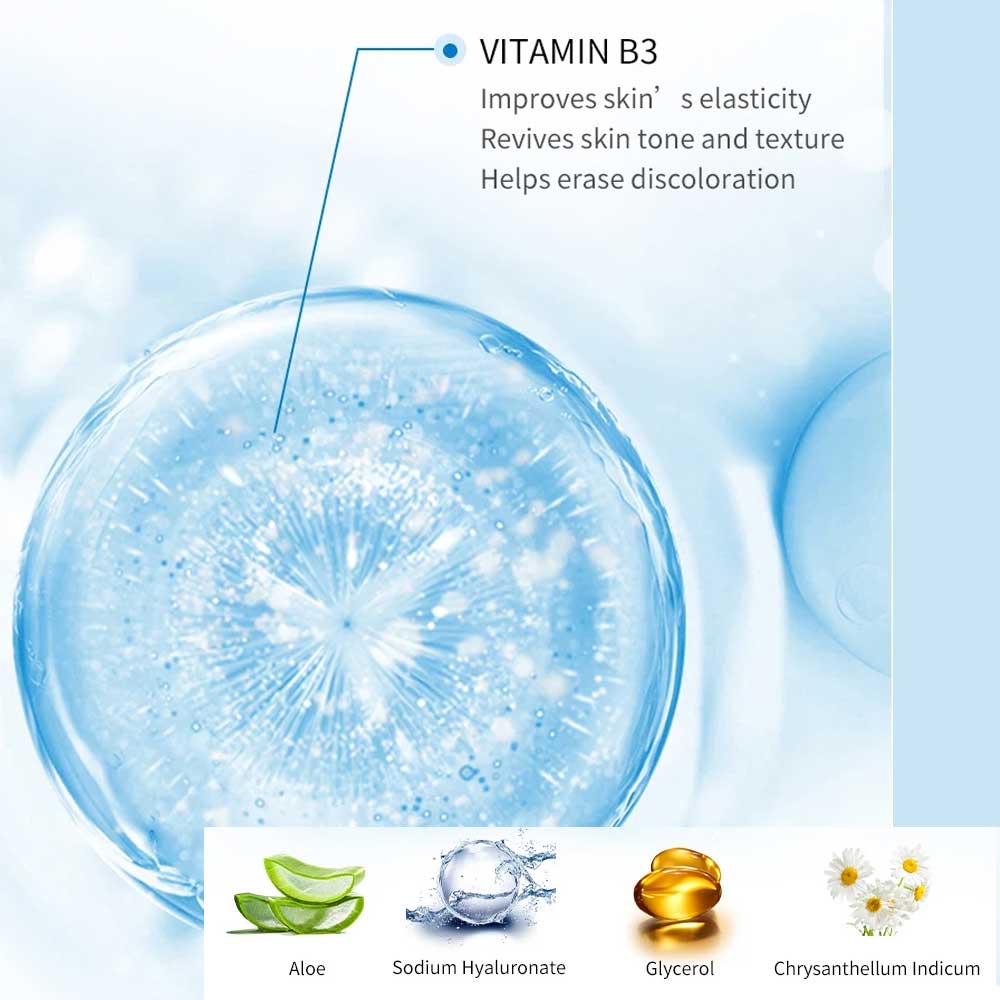 - Niacinamide (Vitamin B3) has been shown to boost collagen. Collagen is lost in the aging process. Loss of collagen is a major cause of wrinkles and sagging skin. Vitamin B3 Niacinamide evens out skin tone and reduces hyper-pigmentation caused by aging and sun damage.