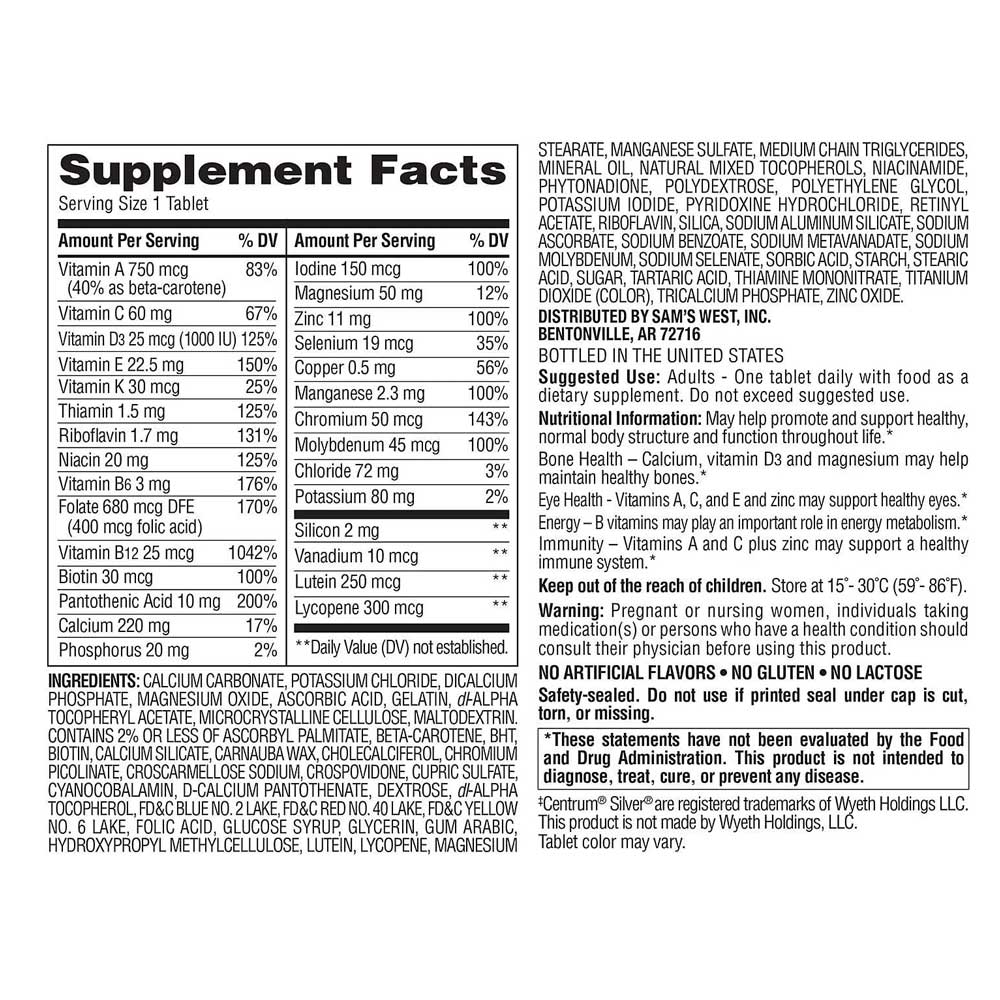 Buy Member's Mark Adults 50+ Multivitamin 400 Tablets online in from Cellsii.com. Be ready to take on your day with these Member's Mark Adults 50+ Multivitamins. Complete with 29 vitamins and minerals, these multivitamins may support heart, immune, eye and bone health. With 29 vitamins and minerals to support heart, immune, eye and bone health. May help promote and support healthy, normal body structure and function throughout life.