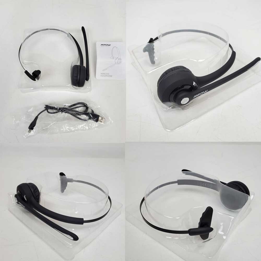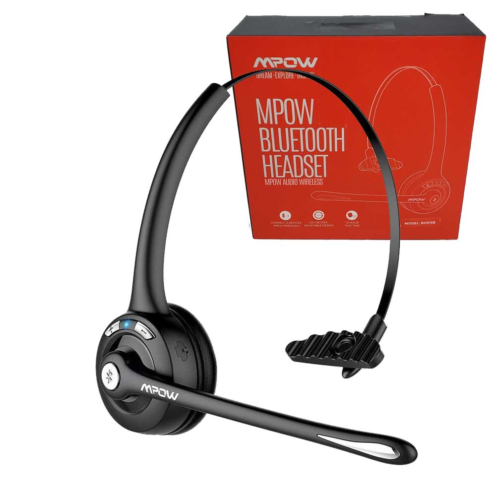 - Enjoy extended comfort with padded earpad and flexible headband.Feel no burden during longer working sessions. The over-the-head bluetooth headset can be worn over the right or left ear according to your preferences.