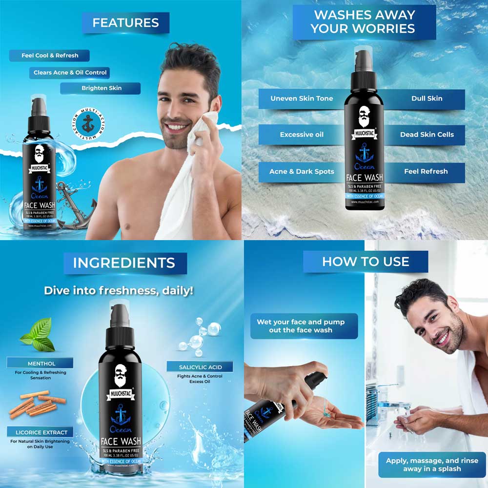 Buy Muuchstac Ocean Face Wash for Men 100ml online in Bangladesh from Cellsii. Muuchstac Ocean Face Wash is specially formulated for men's skin, offering a refreshing and deep-cleansing experience. Infused with natural ingredients, it helps to detoxify the skin by removing dirt, excess oil, and pollutants, while maintaining the skin's natural moisture. The face wash has a cooling effect that revitalizes and rejuvenates the skin, leaving it feeling fresh and energized after every use.