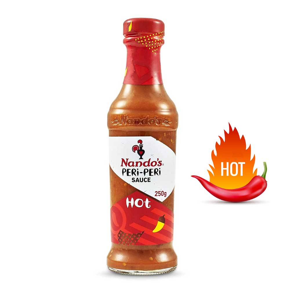 - Packaged in a convenient 250 gm bottle, Nando's Peri Peri Hot Sauce is your passport to a bold and spicy culinary adventure, whether used as a marinade, dipping sauce, or table condiment.