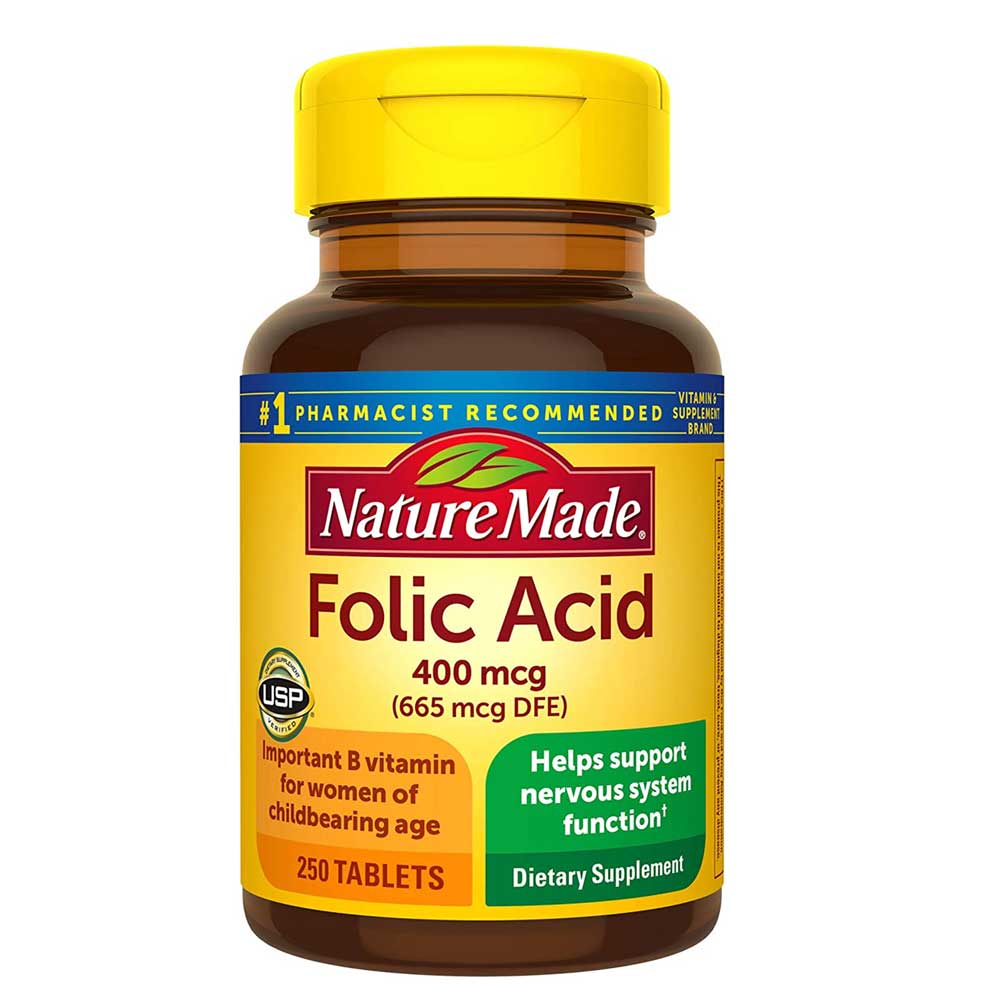 Buy Nature Made Folic Acid 400 mcg 250 Counts online in Bangladesh from Cellsii.com. Folic acid is an important B vitamin for women of childbearing age. Folic acid, also known as folate and folacin from dietary sources, helps support normal functioning of the nervous system and plays a critical role in the proper development of the baby’s nervous system.† Adequate folic acid in healthful diets may reduce a woman’s risk of having a child with a neural tube defect.