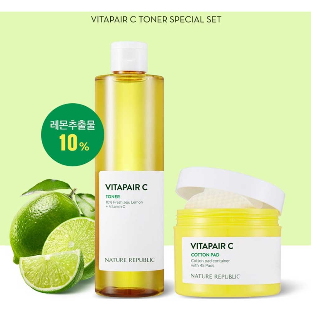Buy Nature Republic Vitapair C Toner Special Set online from Cellsii.com. Vitapair C toner that cares for dull skin tone texture and maintains moist skin texture for clear and transparent skin. Vitapair C toner can be used as a moisture pack in the built-in pad commons.