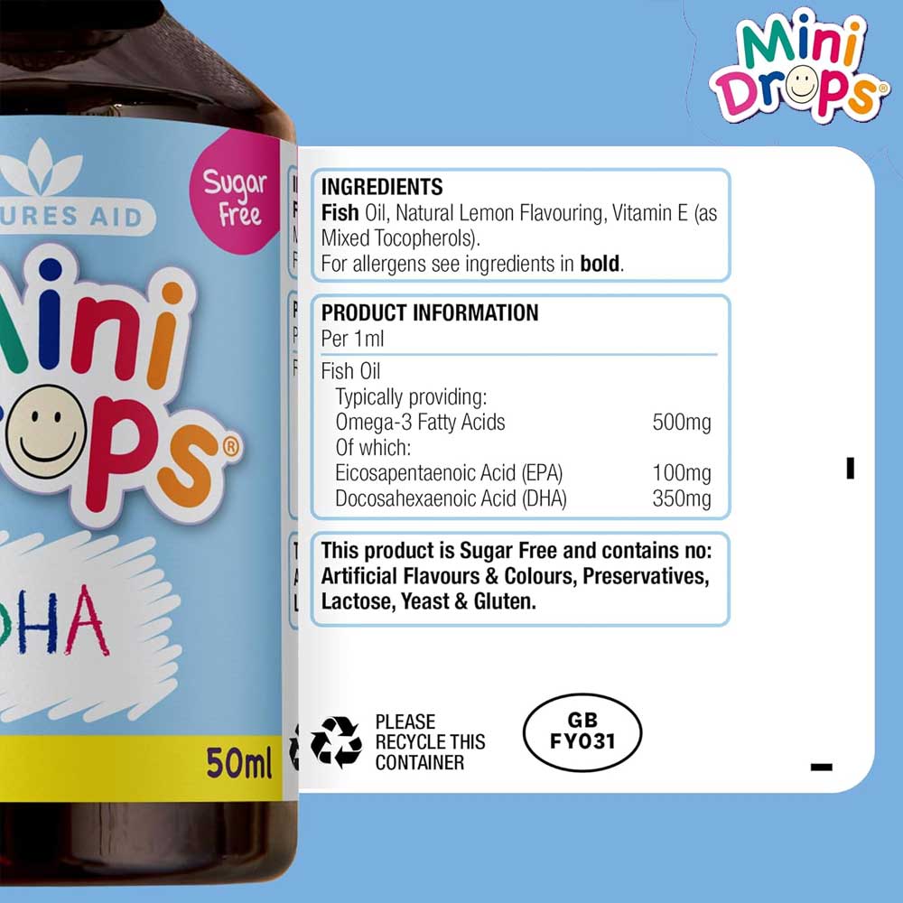 Natures Aid Mini Drops DHA Omega-3 Lemon Flavour 50ml