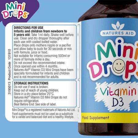 Natures Aid Mini Drops Vitamin D3 Newborn to 5 Years 50ml