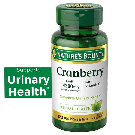 Buy Nature's Bounty Cranberry Fruit Urinary Health Support 4200mg 120 Softgels online in Bangladesh from Cellsii.com at best price. Cranberries help support the integrity of bladder walls to promote urinary health in both men and women. This product also contains Vitamin C that plays a role in supporting immune function. Made from the finest cranberry concentrate available.