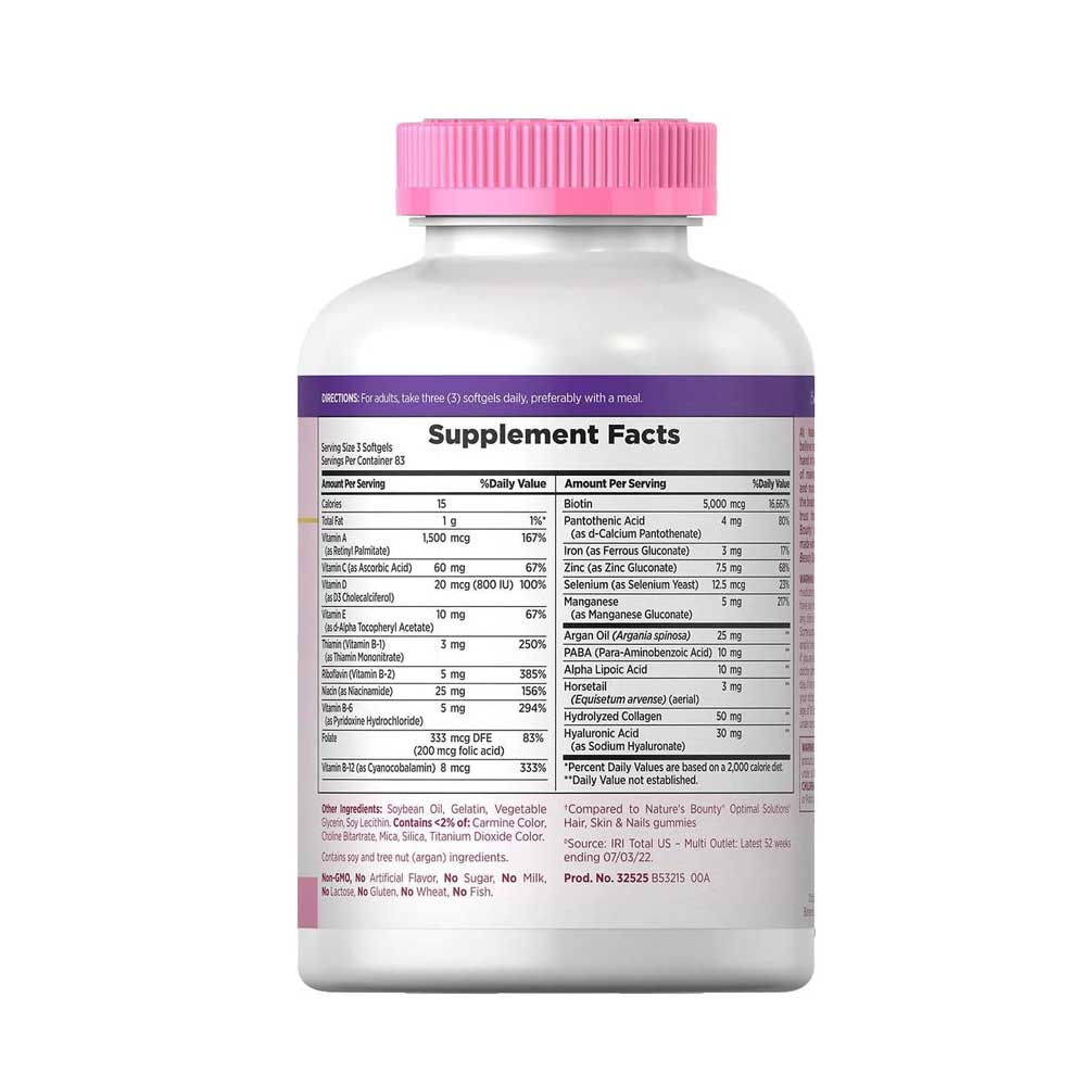 - Being healthy is always beautiful with Nature's Bounty optimal solutions extra strength Hair, Skin & Nails Formula with Argan oil you'll look good and feel great.