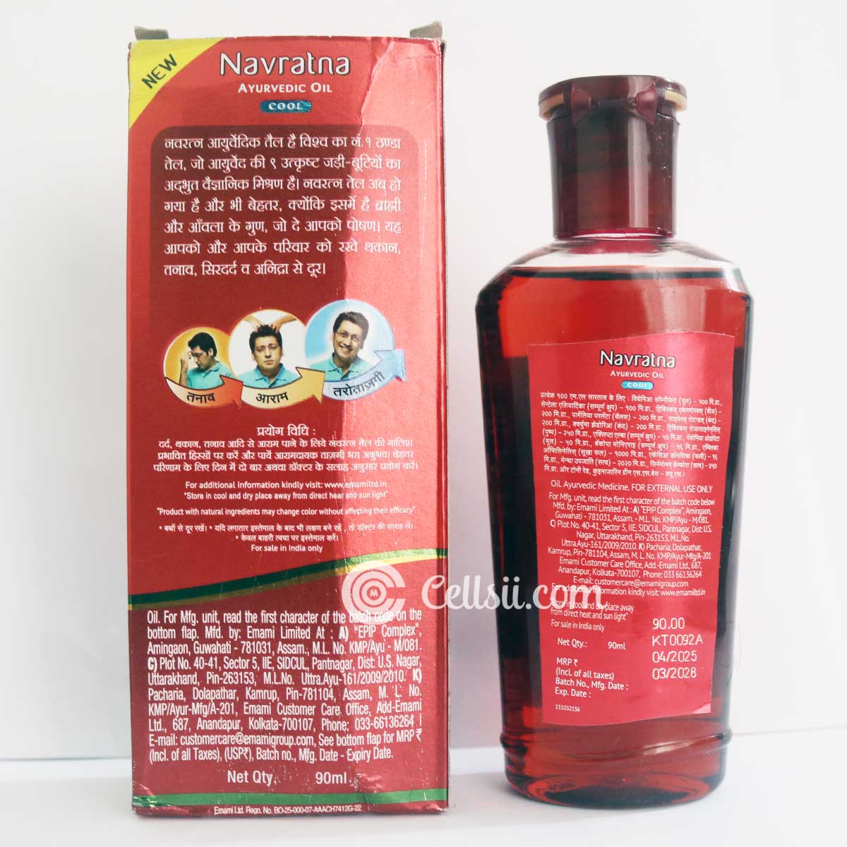- Navratna Cool Oil is a unique blend of 9 essential herbal oils, including mint, camphor, and eucalyptus, known for their cooling and therapeutic properties which is widely recognized for its exceptional quality, effectiveness, and extensive user satisfaction.