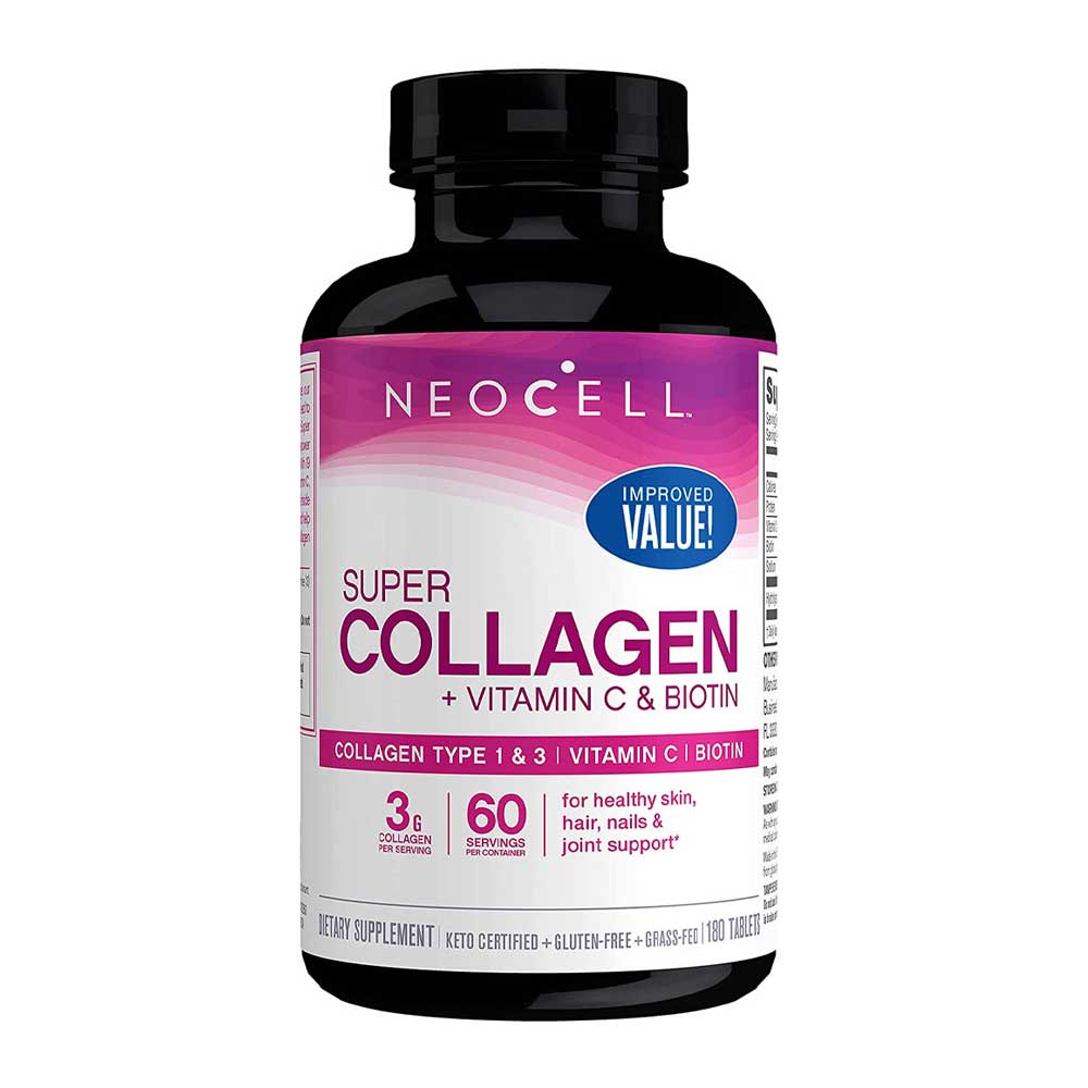 Buy NeoCell Super Collagen + Vitamin C & Biotin 180 Tablets online from Cellsii.com. Turn your inner strength into outer beauty. NeoCells Super Collagen + C supports healthy collagen formation for youthful skin, healthy hair and nails. Collagen is a complex structural protein that maintains strength and flexibility throughout the body. As we age, collagen cross-linking and depletion can lead to common signs of aging in the skin, muscles, tendons, ligaments, and bones. NeoCell collagen supplements support healthy collagen formation for youthful skin, healthy hair and nails.