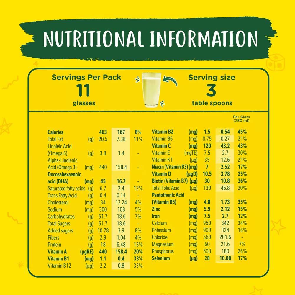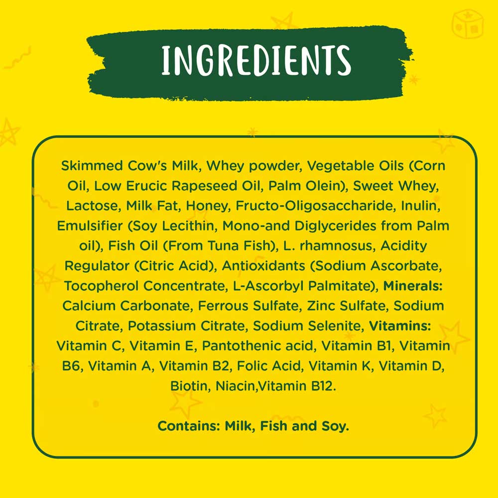 - Rich in DHA for brain development, Vitamin D for stronger bones and with no added sucrose for healthier growth.